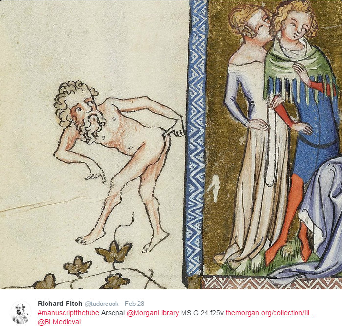A monk’s envy expresses itself. The BL bloggers passed this on from the Morgan Library’s collection, MS G 24, f. 25v.
